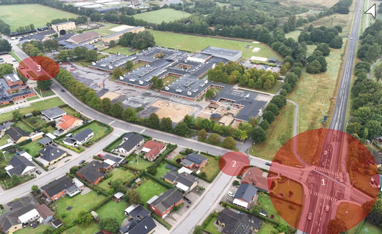 Helt overordnet er skolens elever meget dygtige til at færdes i trafikken, da de respekterer reglerne, viser hensyn og er meget opmærksomme på biler og på hinanden. Der er ikke observeret situationer, der er trafikfarlige, mens der dog er observeret enkelte lokaliteter, hvor der kan opstå uhensigtsmæssige situationer. Lokaliteterne er markerede på figur 7 og nummereret i tilfældig rækkefølge.