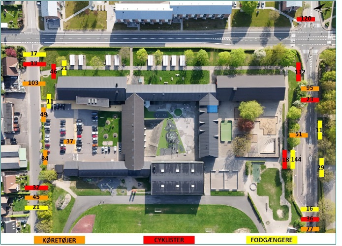 På figuren herunder ses en opsummering af registrerede trafikanter i optageperioden fordelt på transportmidler.