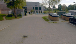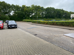 Det er ikke umiddelbart muligt at lave en ekstra udkørsel fra parkeringspladsen pga. stor niveauforskel i den nordlige ende af parkeringspladsen. |
