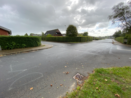 Det kan være svært at krydse vejen her, da der ikke er et fodgængerfelt. Det gør at eleverne har svært ved at ud af hvor de skal krydse Uhre Byvej og Gejlbjergvej. |