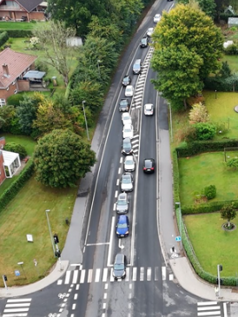 Der kører ofte meget trafik ind og ud fra parkeringspladsen i spidstimen om morgenen, som gør at der opstår en flaskehals. |