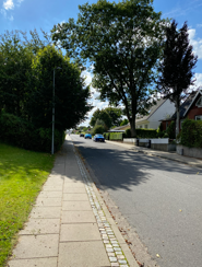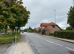 | Høj vurderet hastighed på Hyvildvej, hvilket kan virke utrygt for cyklister og fodgængere, der skal krydse vejen. |