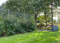 Der er smutveje igennem trærækken, som kan blive blød og besværlig at bruge i vådt vejr. | Beplantningen tilhører skolen, så skolen kan overveje at afspærre de trampede stier igennem beplantningsbæltet, hvis det skal forhindres at eleverne benytter disse. |