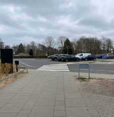 Fodgængere siver ind over parkeringspladsen, da der ikke er et afmærket areal til dem der kommer fra den sydlige del af Hyvildvej eller H.C. Andersens Vej. |